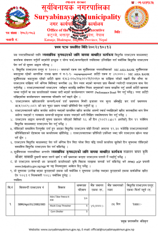 » कृषि व्यवसाय अनुदानका लागि कृषि औजार खरिद सम्बन्धी विद्युतिय सिलबन्दी दरभाउपत्र आह्वानको सूचना !!!