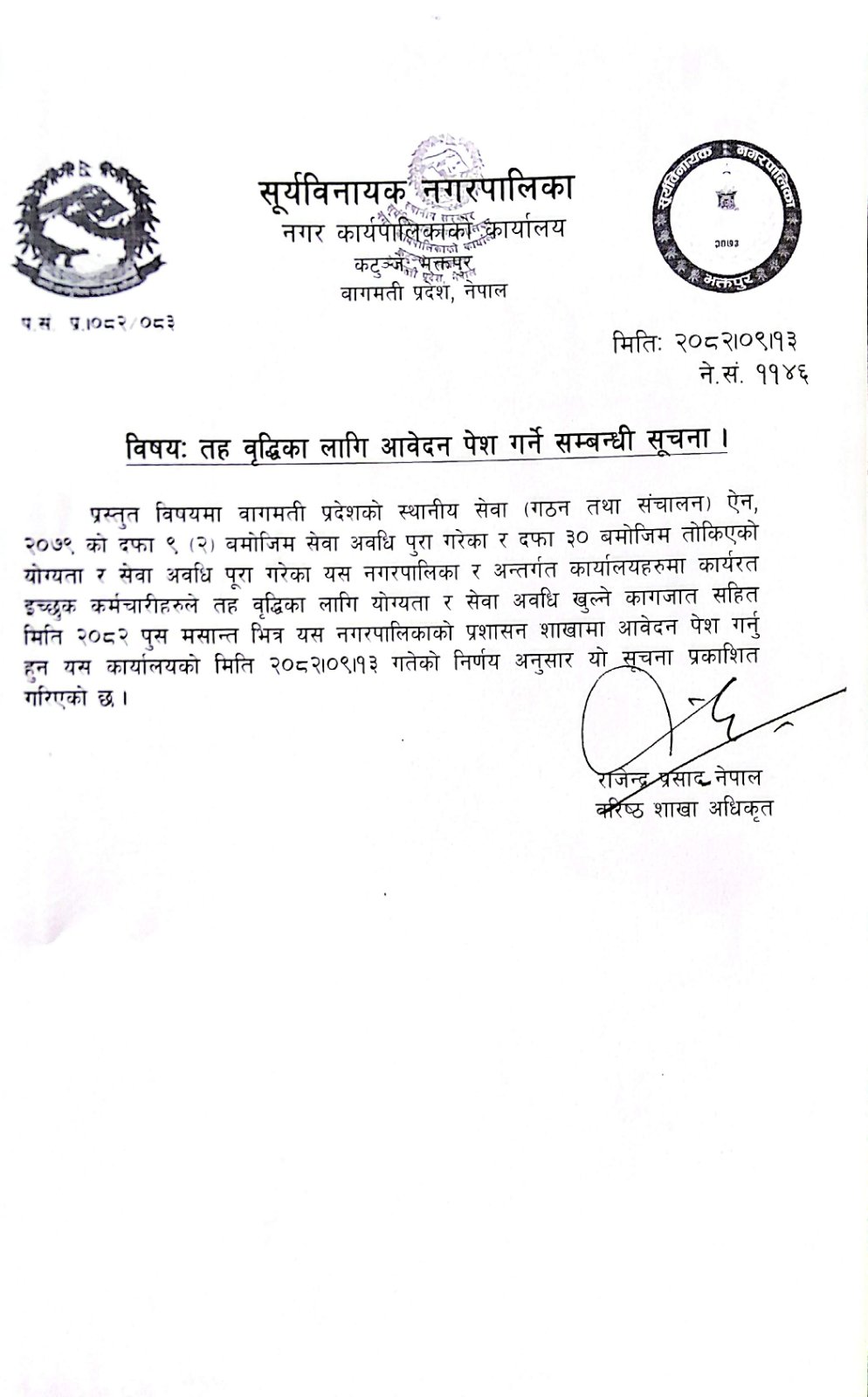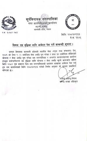 तह वृद्धिका लागि आवेदन पेश गर्ने समबन्धी सूचना !!!