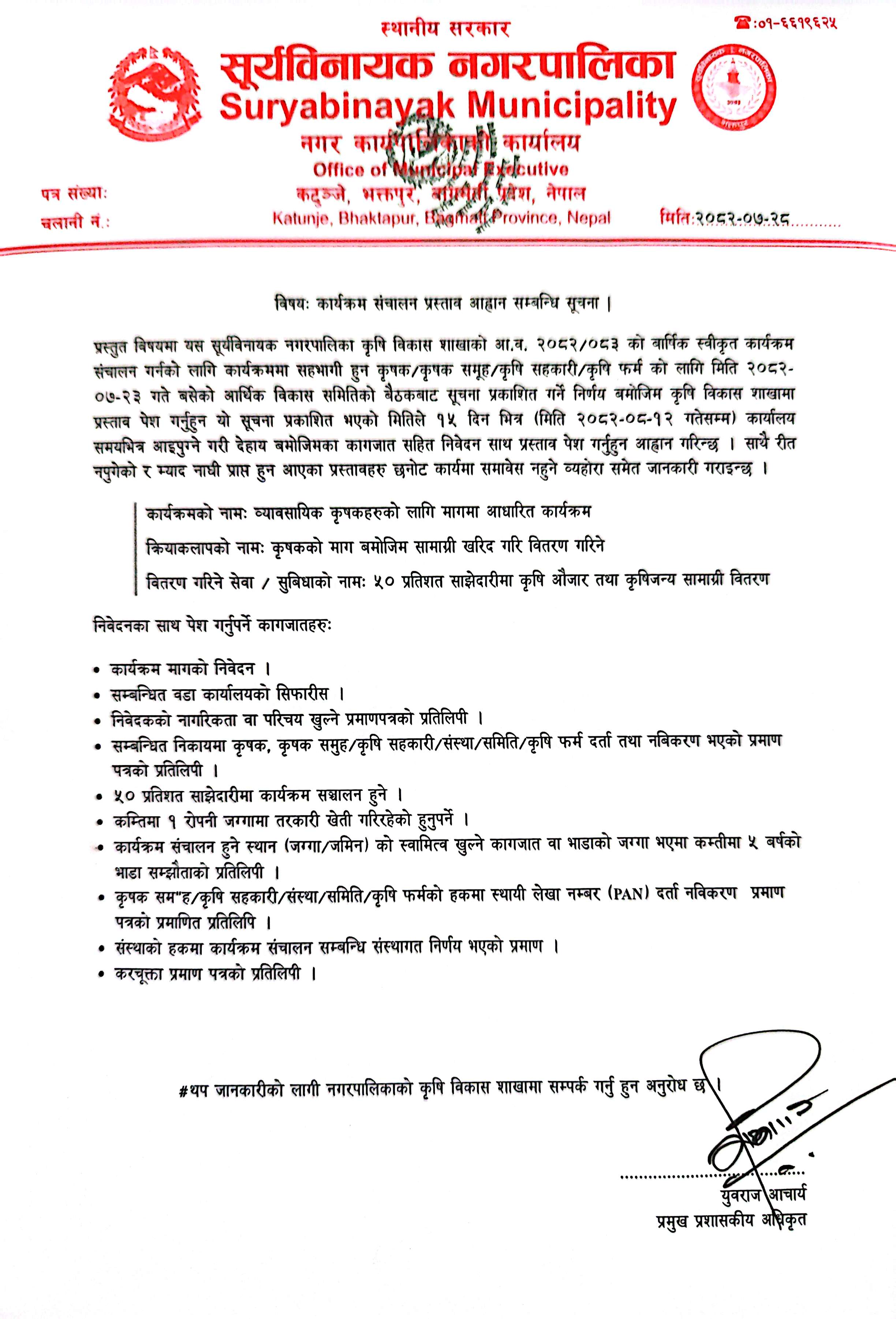 कार्यक्रम संचालन प्रस्ताव आह्वान सम्बन्धि सूचना । २०८२/०७/२४