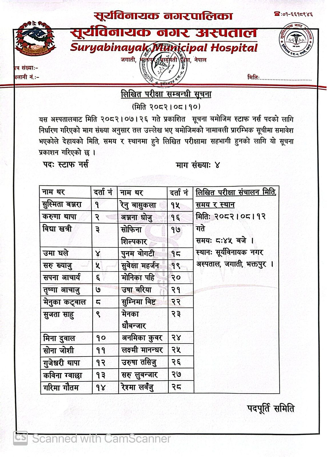 लिखित परिक्षा संचालन सम्बन्धी सूचना !!!