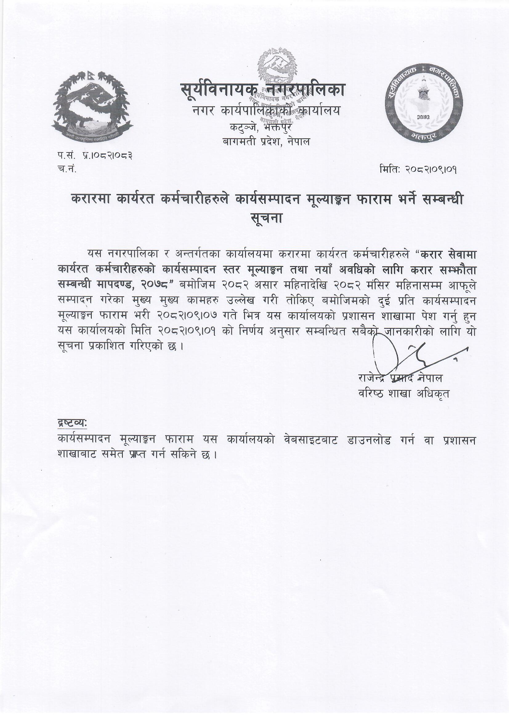 करारमा कार्यरत कर्मचारीहरुले कार्यसम्पादन मूल्याङ्कन फाराम भर्ने सम्बन्धी सूचना
