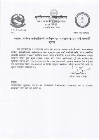 » करारमा कार्यरत कर्मचारीहरुले कार्यसम्पादन मूल्याङ्कन फाराम भर्ने सम्बन्धी सूचना