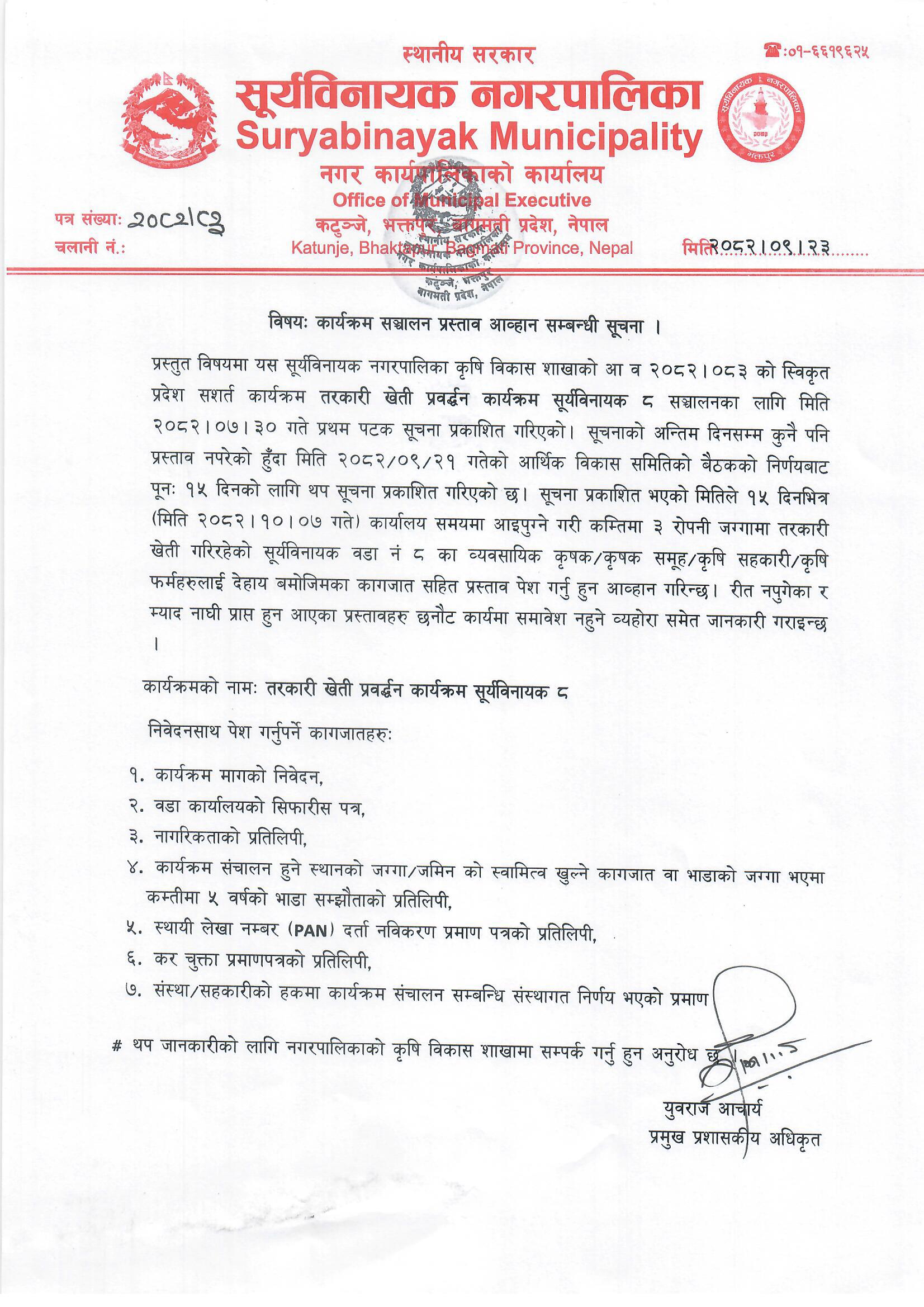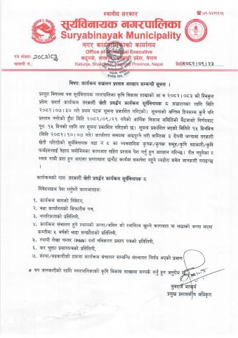 कस्पोष्ट मल तालिम तथा सयपत्री फूल बेर्ना वितरण कार्यक्रमको प्रस्ताव आव्हानको सम्बन्धी सूचना । प्रकाशित मितिः २०८२।११।१७
