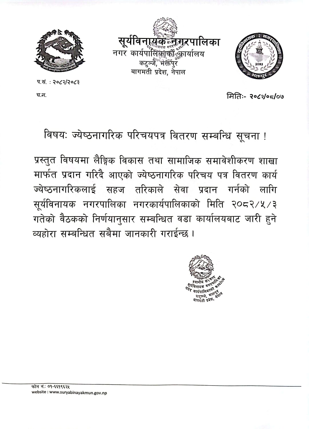 » ज्येष्ठ नागरिक परिचयपत्र वितरण सम्बन्धी सूचना !!!