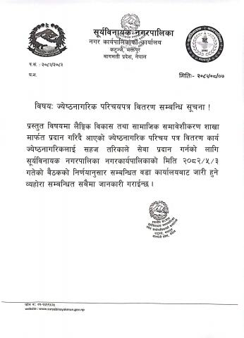 ज्येष्ठ नागरिक परिचयपत्र वितरण सम्बन्धी सूचना !!!