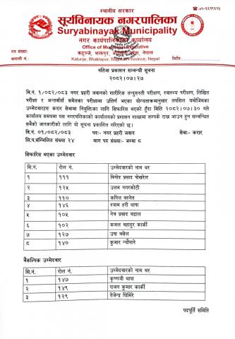 नतिजा प्रकाशन सम्बन्धी सूचना । (नगर प्रहरी जवान) २०८२/०७/२७