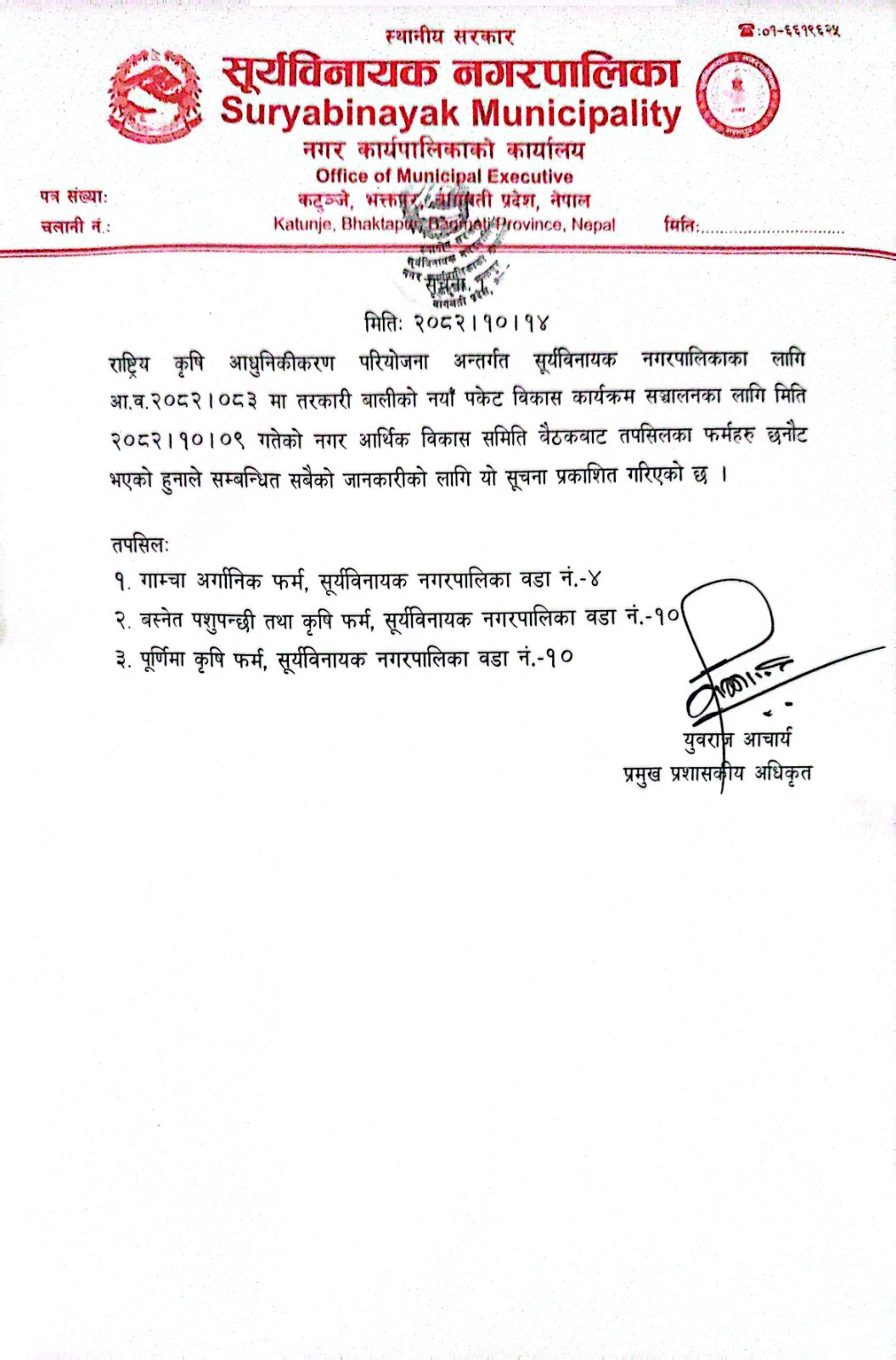 कृषि व्यवसाय अनुदानका लागि कृषि औजार खरिद सम्बन्धी विद्युतिय सिलबन्दी दरभाउपत्र आह्वानको सूचना !!!