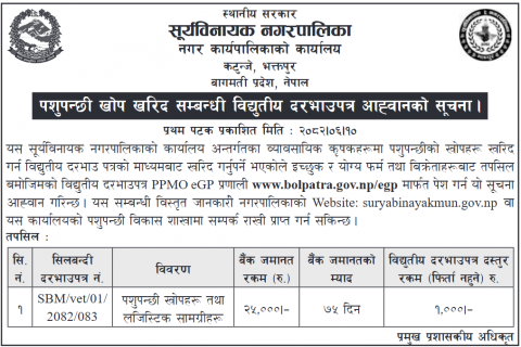 पशुपन्छी खोप खरिद सम्बन्धी विद्युतीय दरभाउपत्र आह्वानको सूचना !