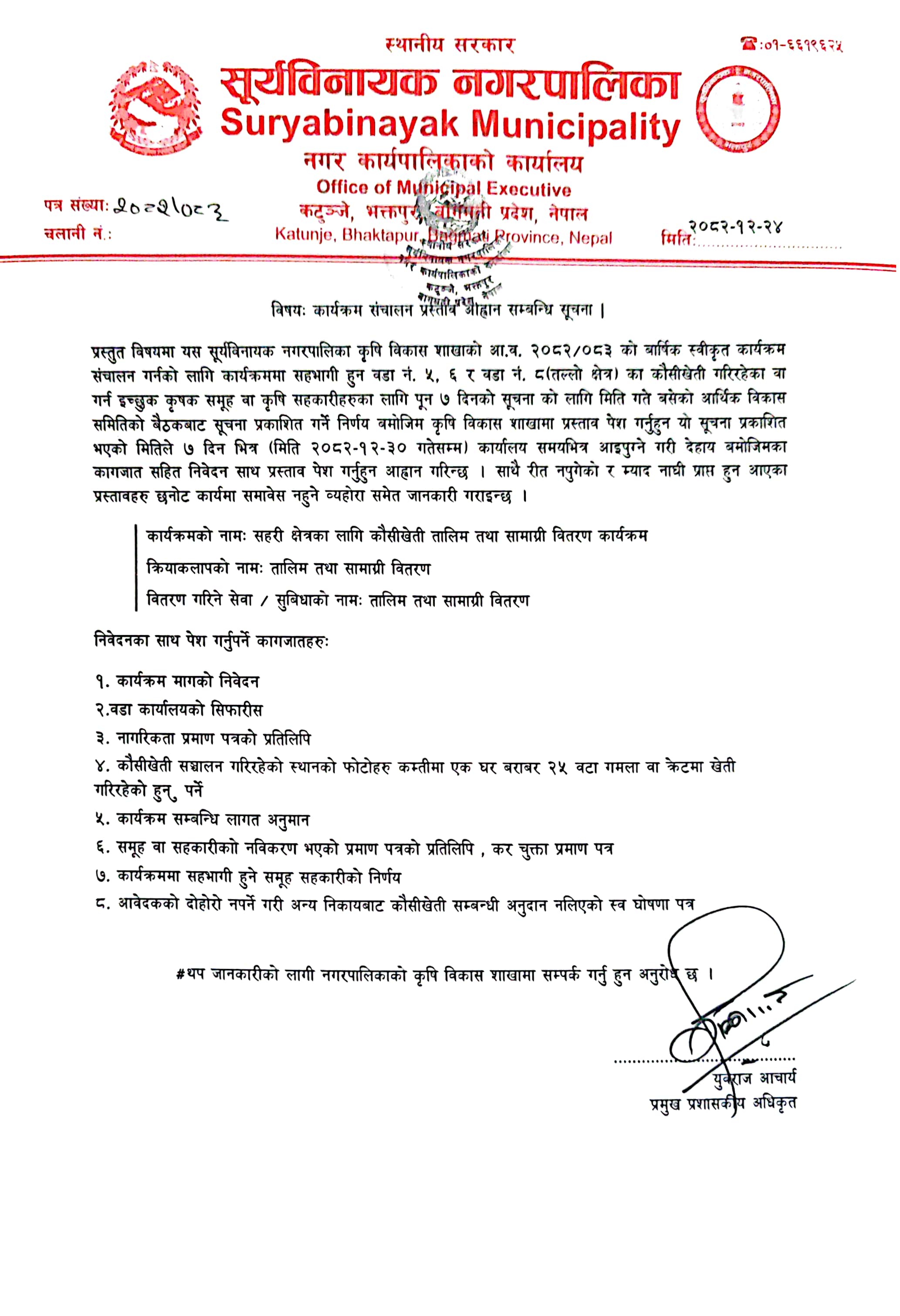 » कौशी खेती कार्यक्रमका लागि प्रस्ताव आह्वानको सूचना !