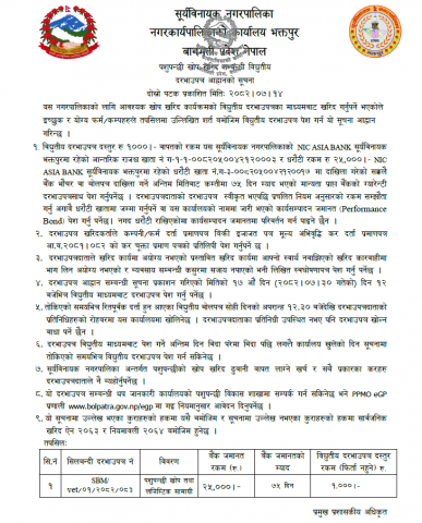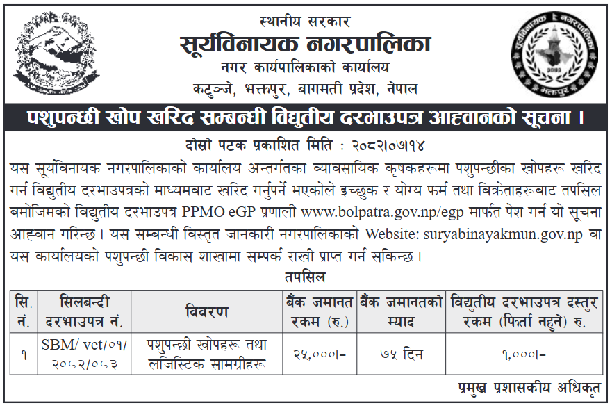 » पशुपन्छी खोप खरिद सम्बन्धी विद्युतीय दरभाउपत्र पुनः आह्वानको सूचना ! प्रकाशन मितिः २०८२/०७/१४