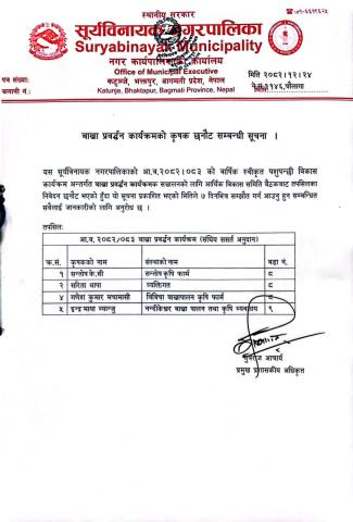 सूर्यविनायक नगरपालिका अन्तरगतका संस्थागत विद्यालयहरूले स्तरीकरणका लागि अनिवार्य रूपमा बुझाउनुपर्ने फारम सम्बन्धी सूचना !