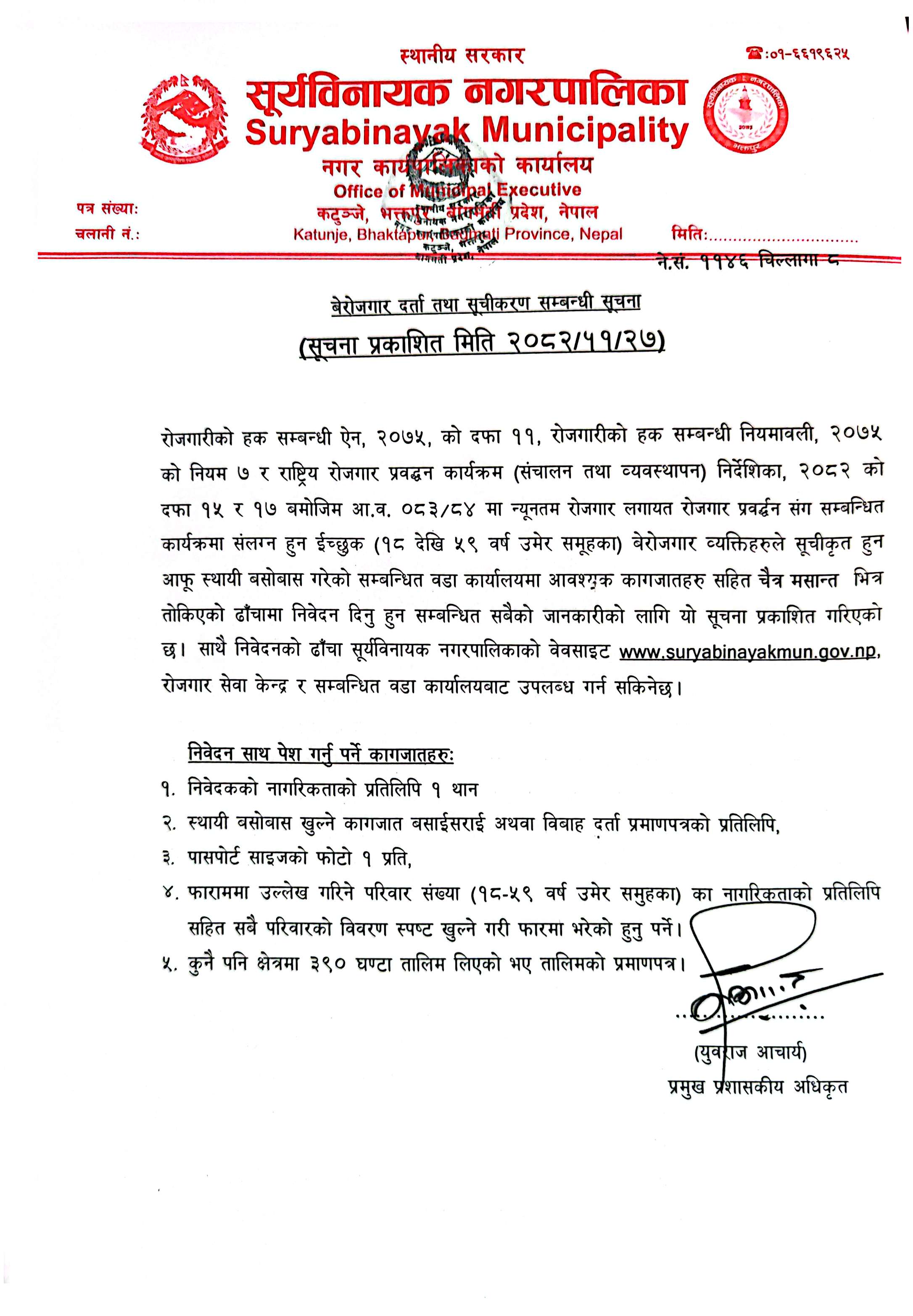 बेरोजगार दर्ता सम्बन्धी सूचना !