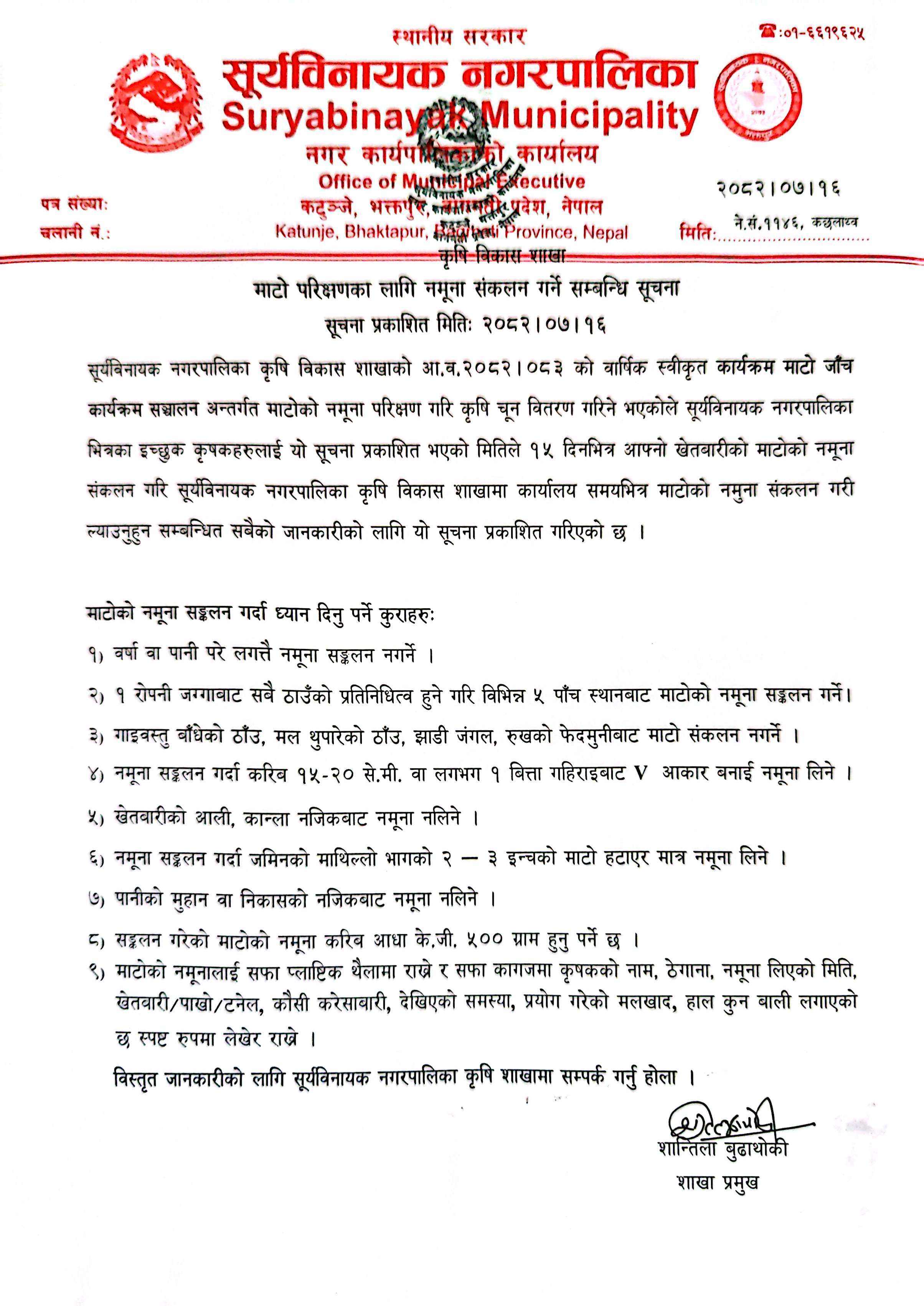 » माटो परिक्षणका लागि नमूना संकलग गर्ने सम्बन्धी सूचना !!!