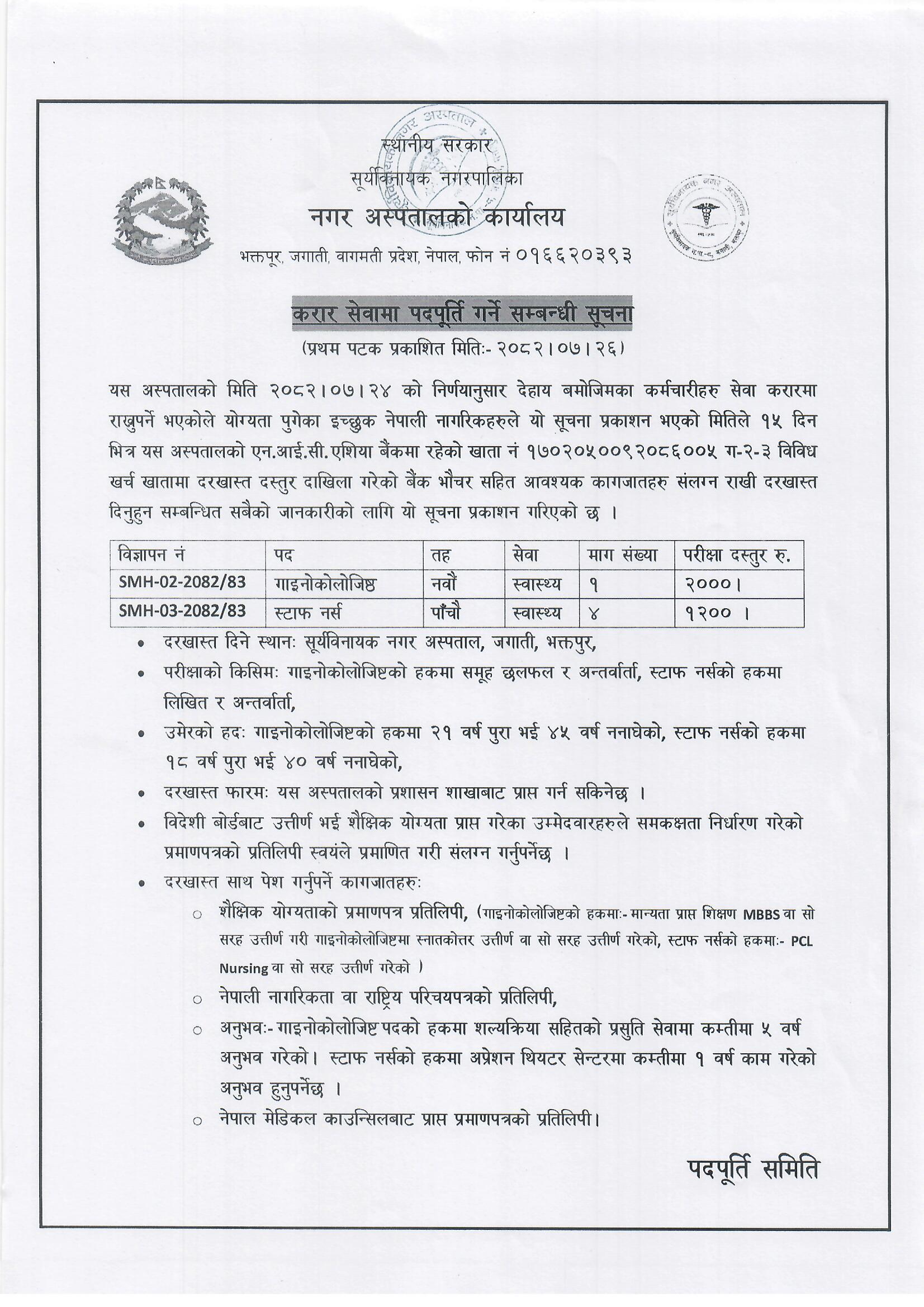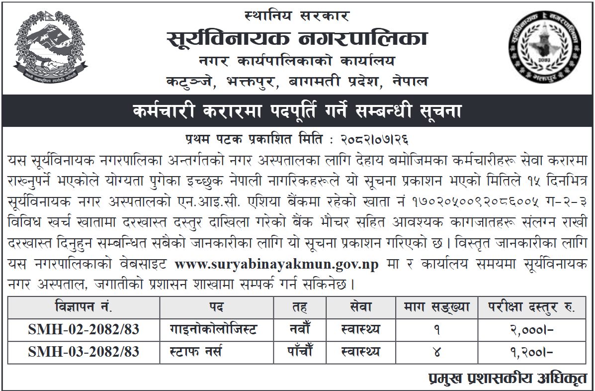 कर्मचारी करारमा पदपूर्ति गर्ने सम्बन्धी सूचना । २०८२/०७/२६